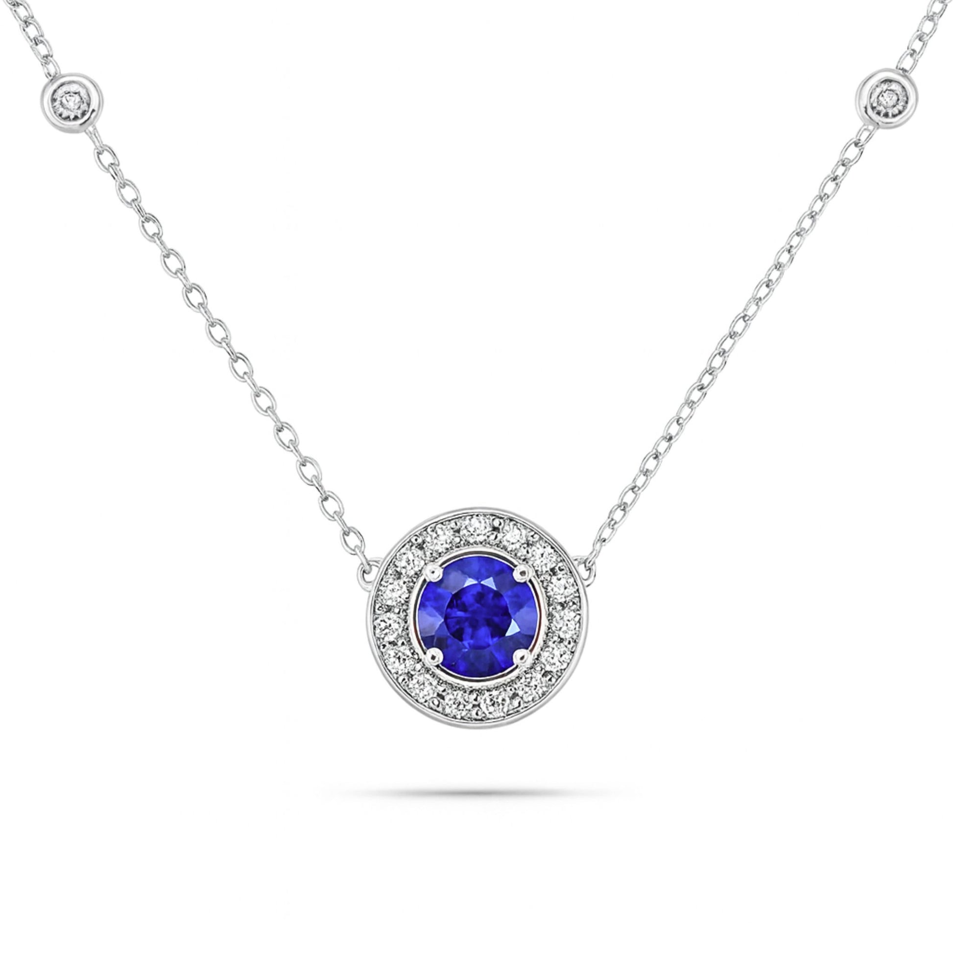 14K 0.60ct Round Blue Wing Tanzanite 0.33cttw VS White Diamonds Necklace