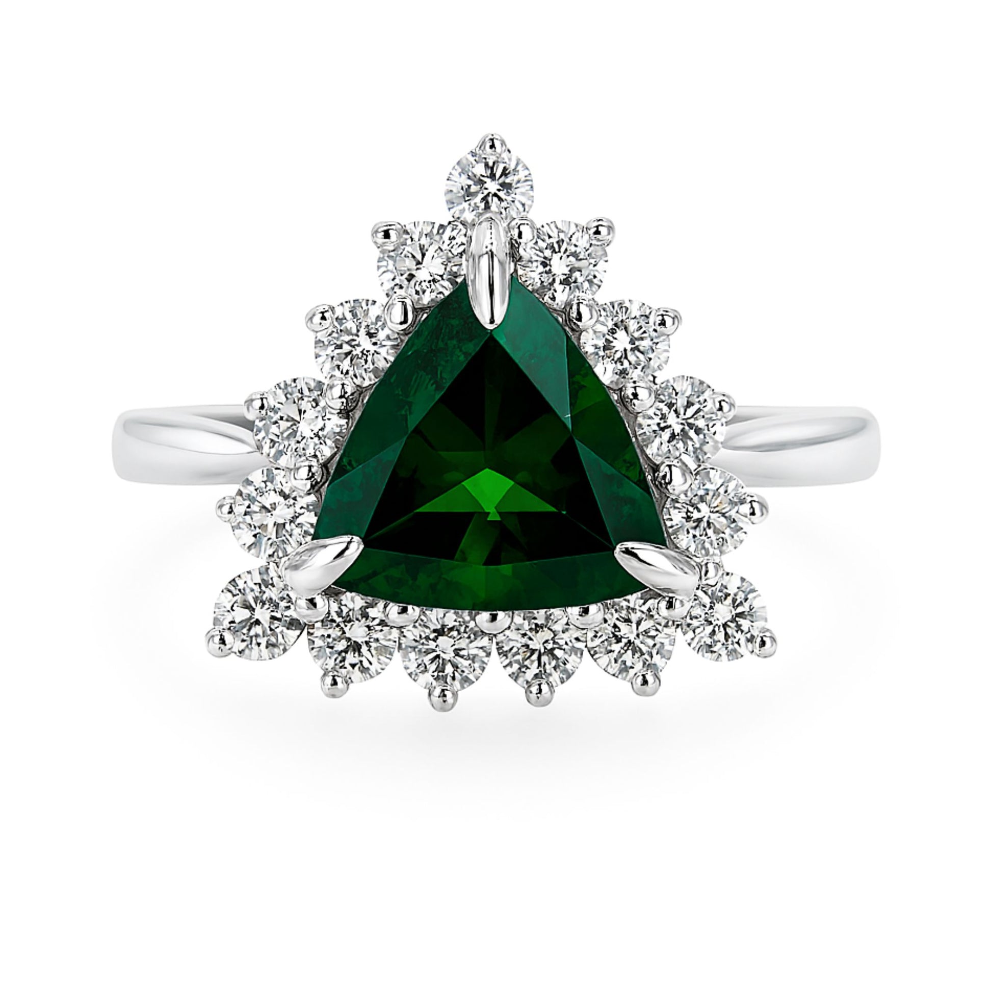 14K 2.03ct Trilliant Tsavorite 0.89cttw White Diamonds Ring