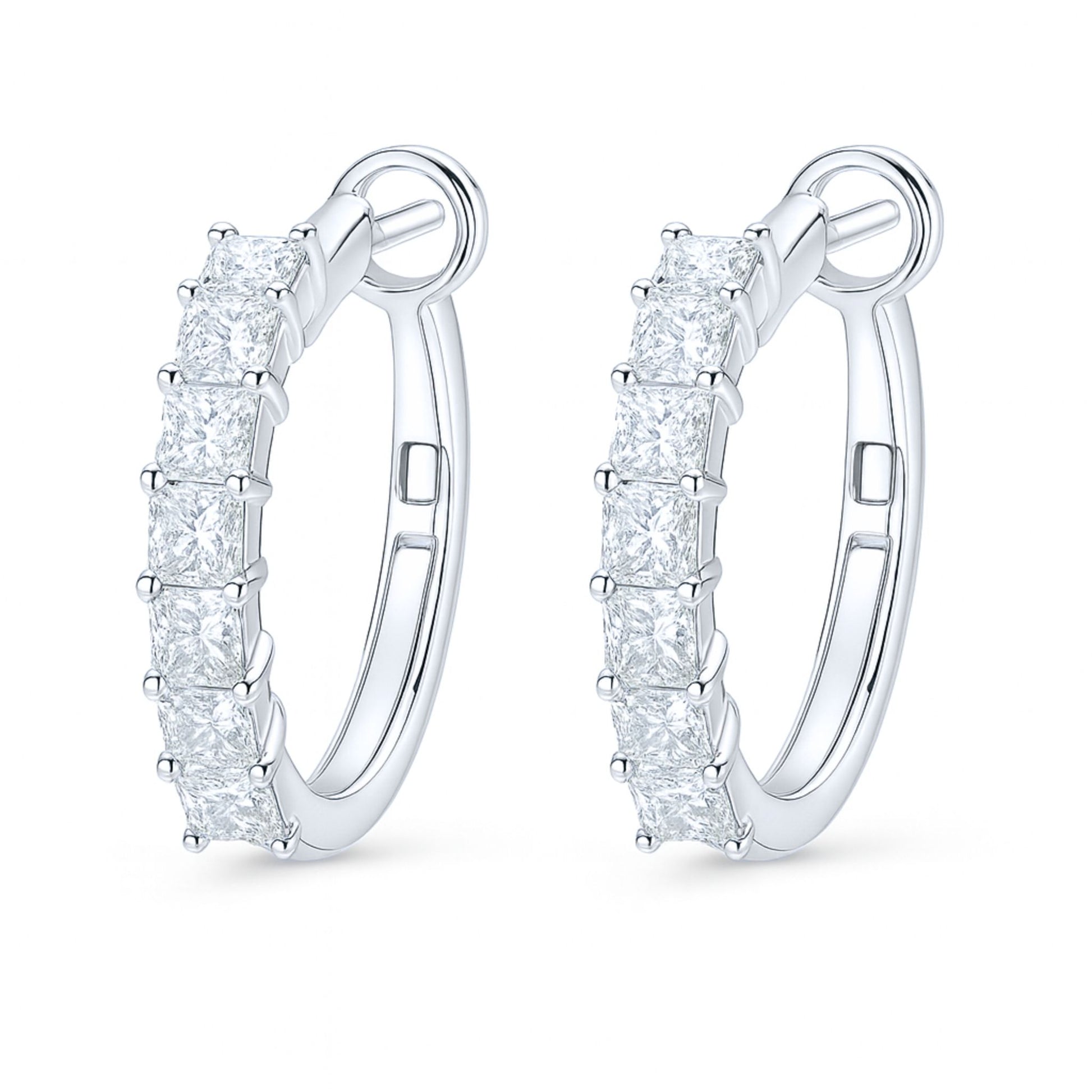 14K 0.86cttw Princess Cut VS White Diamond Hoop Earrings