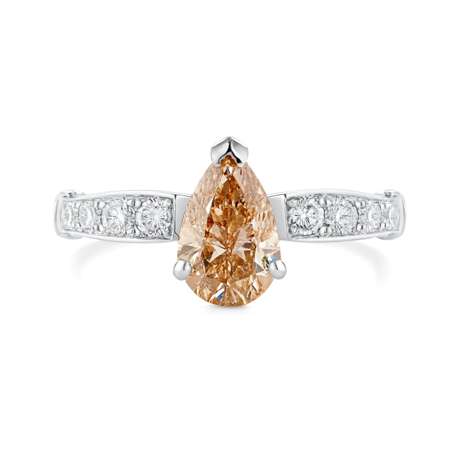 18K 1.08ct Pear Shape Fawn Diamond 0.55cttw White Diamonds Ring