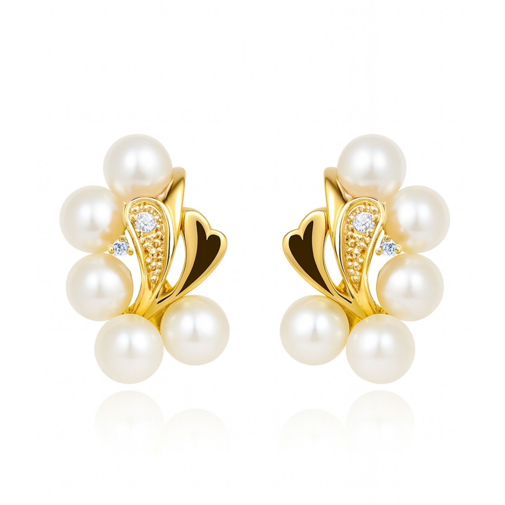 18K 5mm Round South Sea White Pearl 0.10cttw White Diamonds Huggie Earrings