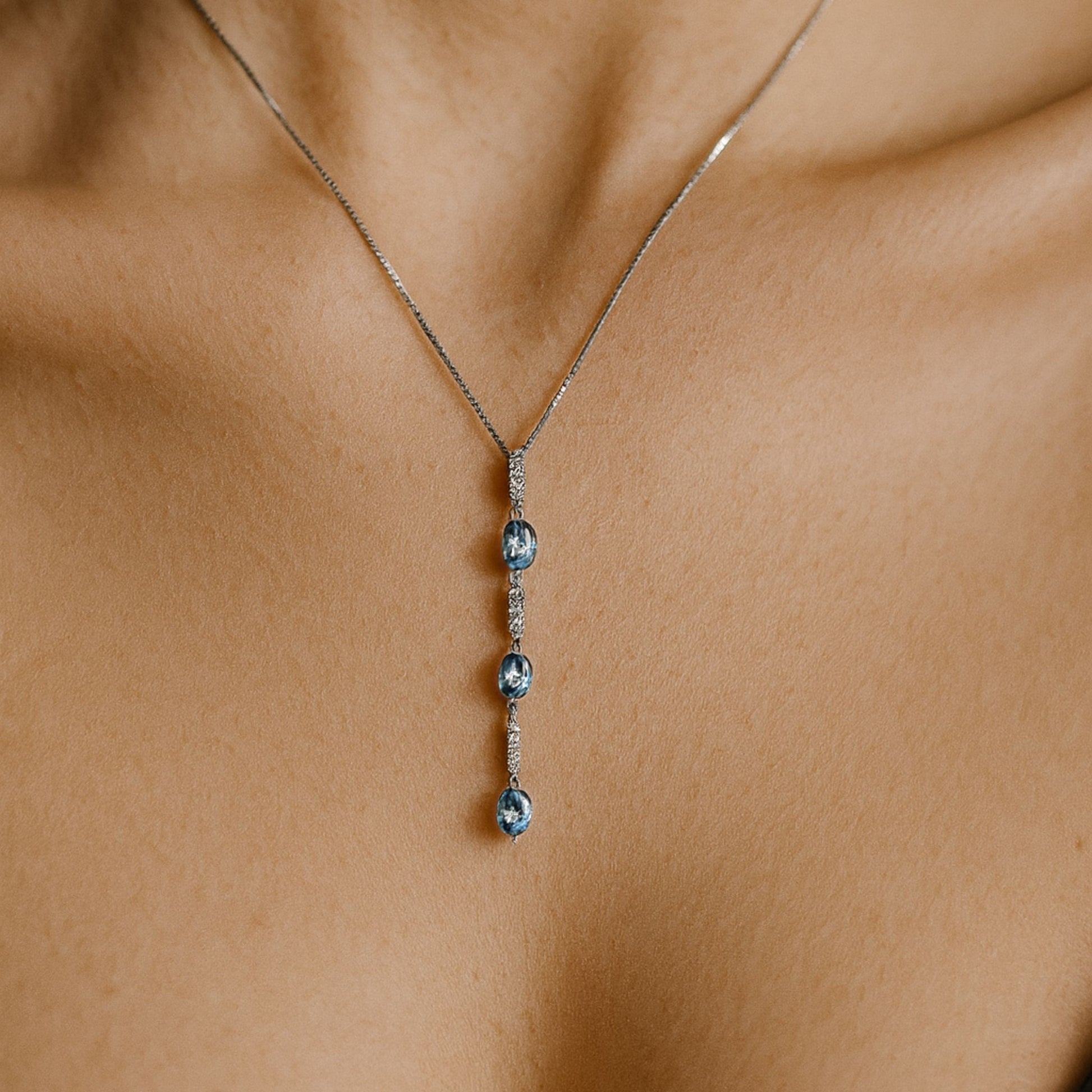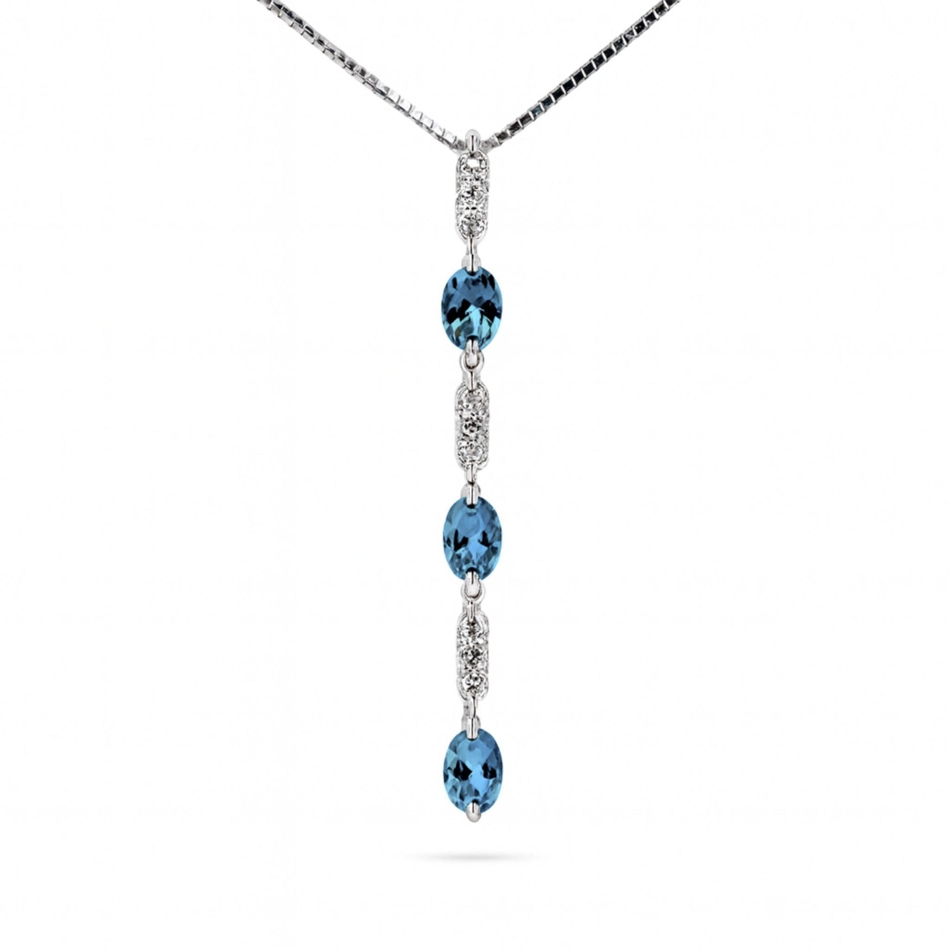 18K 1.30cttw Oval Santa Maria Aquamarine 0.36cttw White Diamonds Necklace