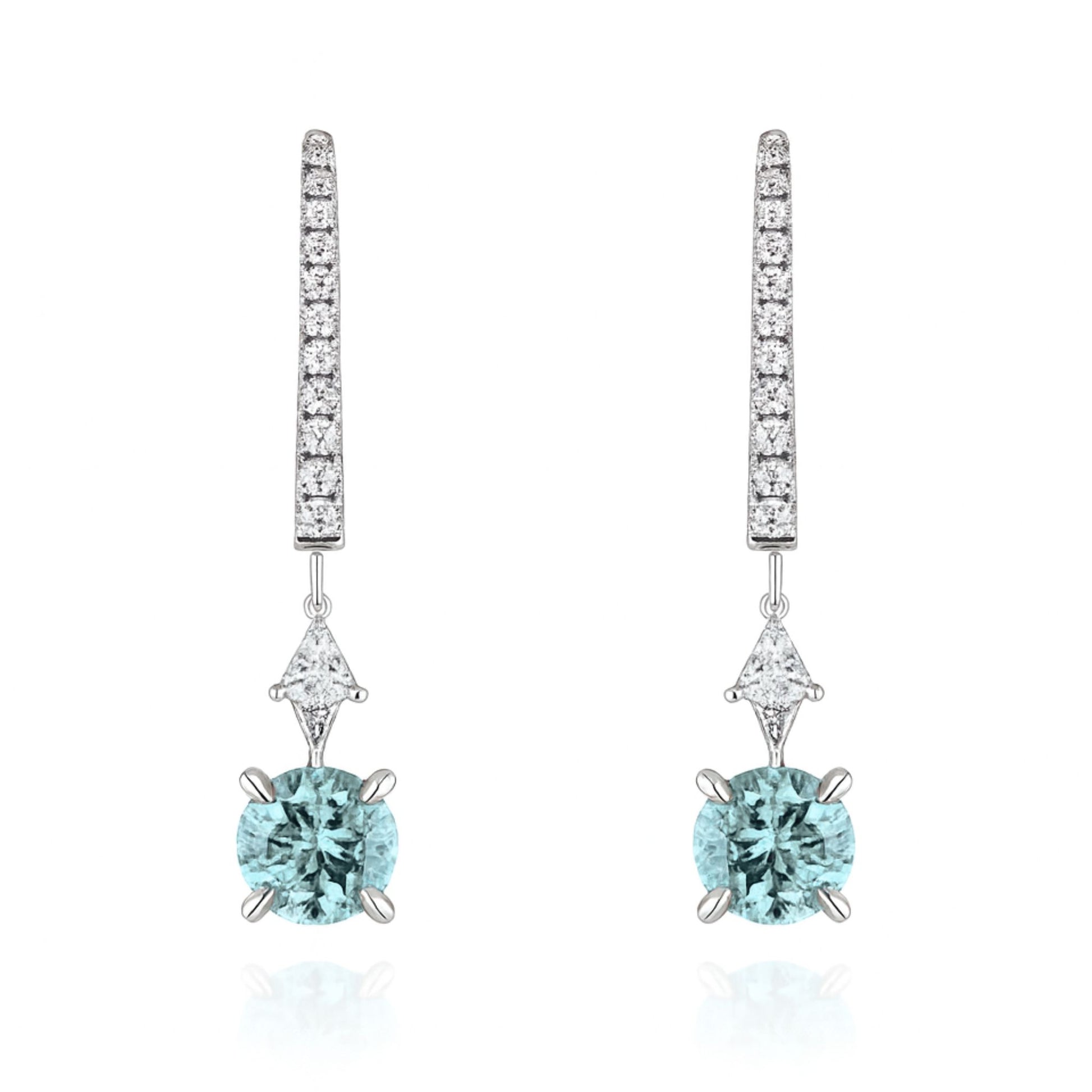 18K 1.13cttw Round Paraiba 0.30cttw VS White Diamonds Drop Earrings