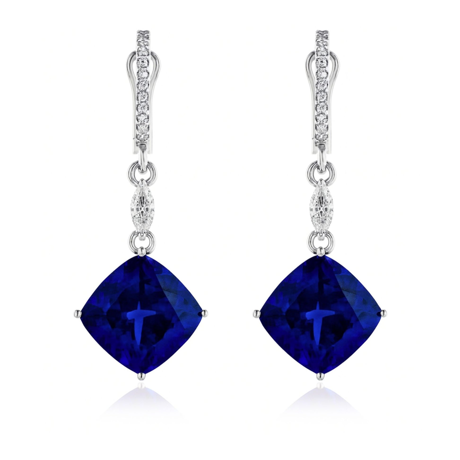 18K 18.52cttw Cushion Blue Wing Tanzanite 0.52cttw Marquise & Round VS White Diamond Drop Earrings