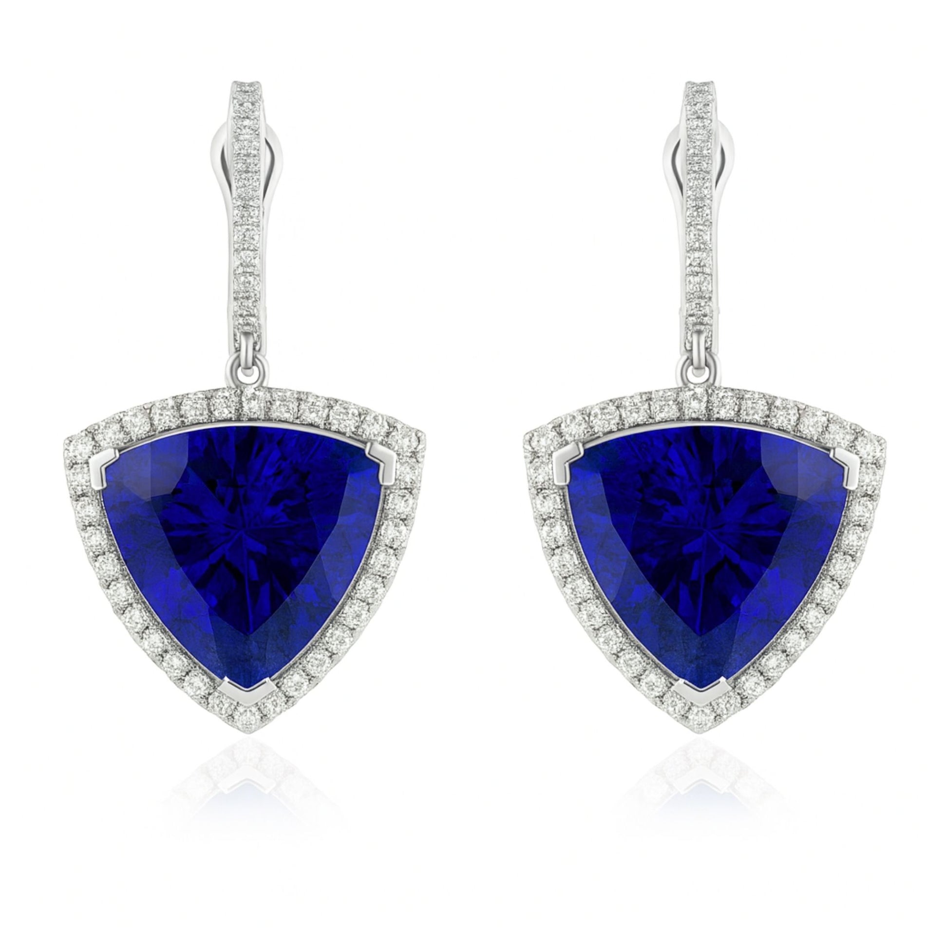 18K 26.10cttw Trilliant Blue Wing Tanzanite 1.00cttw VS White Diamonds Drop Earrings