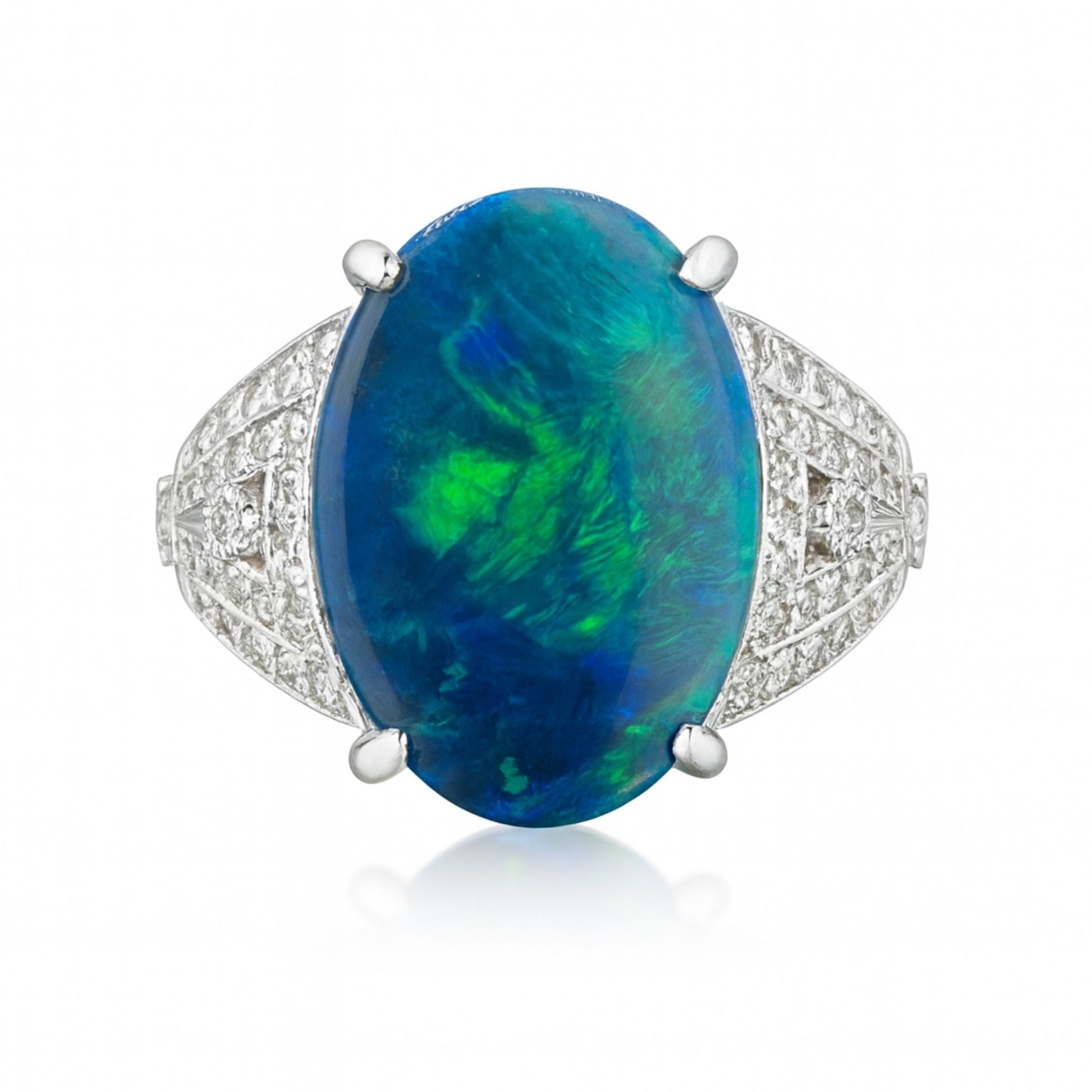 Platinum 4.29ct Oval Black Opal 0.35cttw White Diamonds Ring