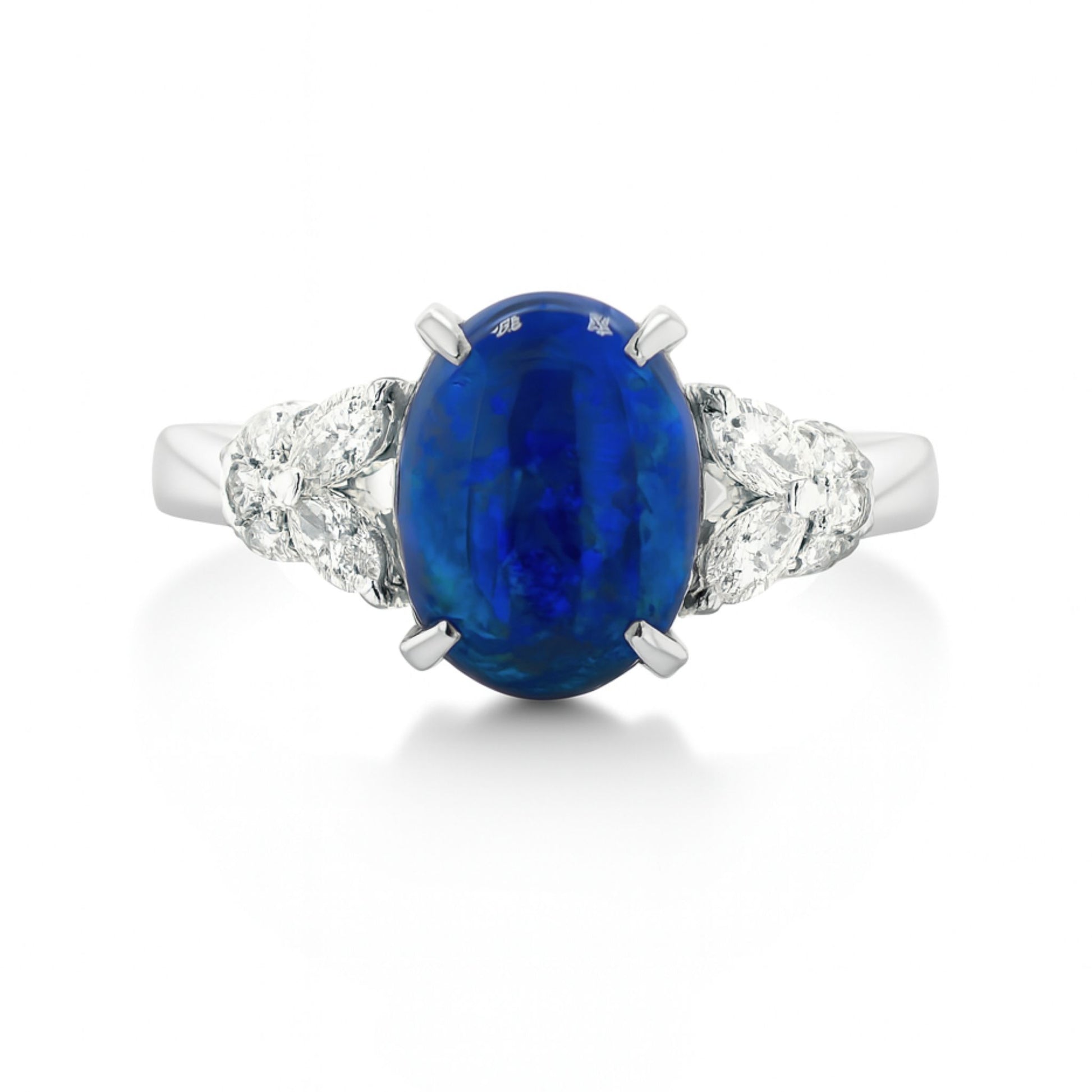Platinum 2.16ct Oval Black Opal 0.30cttw White Diamonds Ring