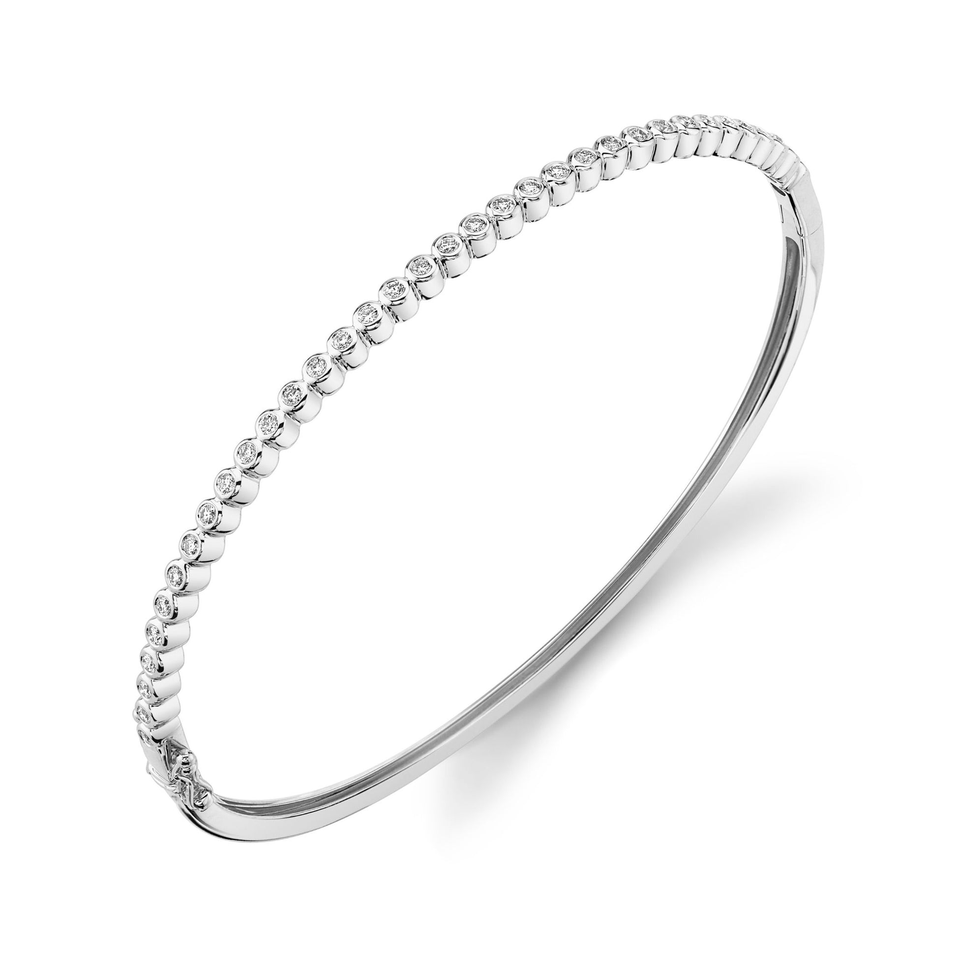 14K 0.85cttw Round VS White Diamond Bezel Set Bangle