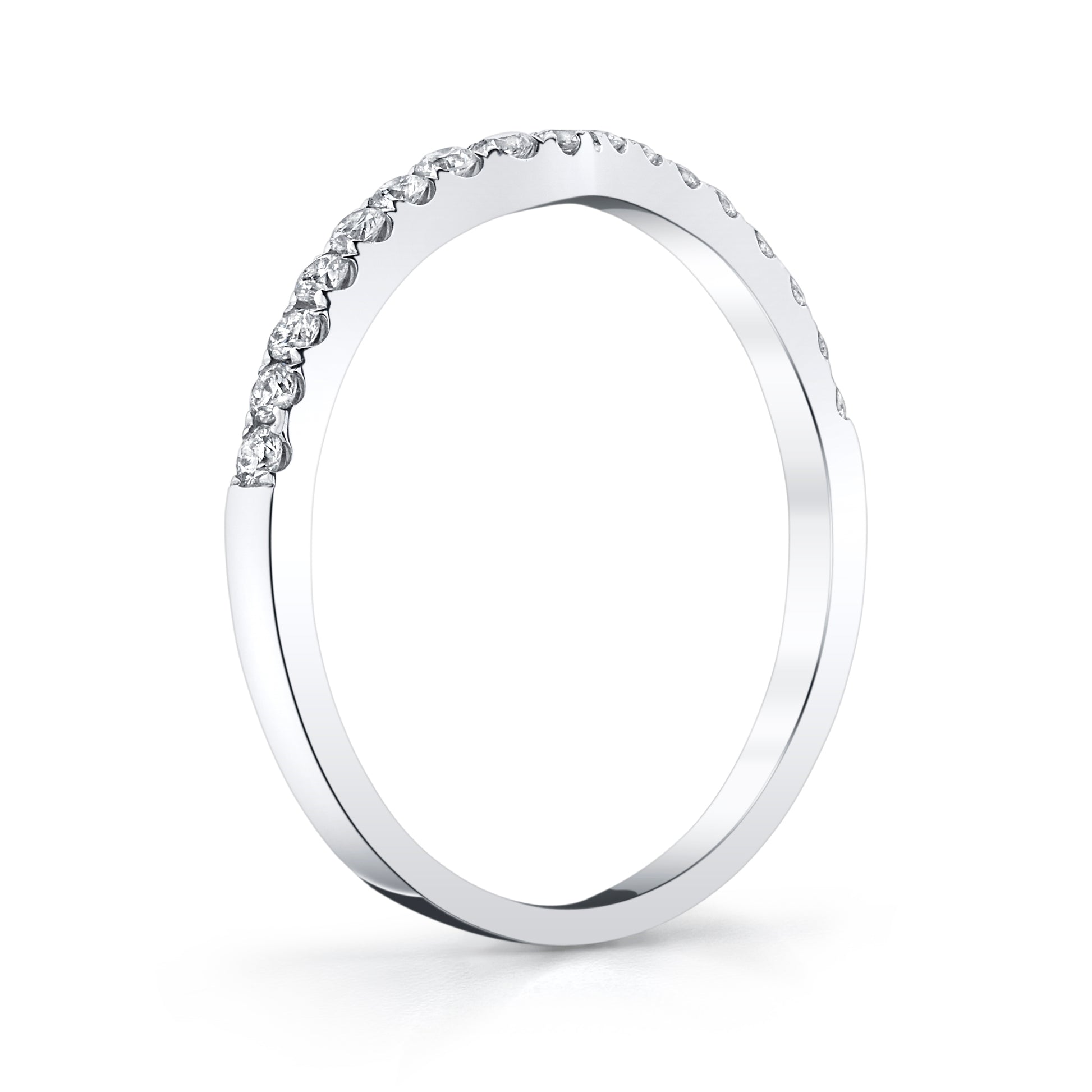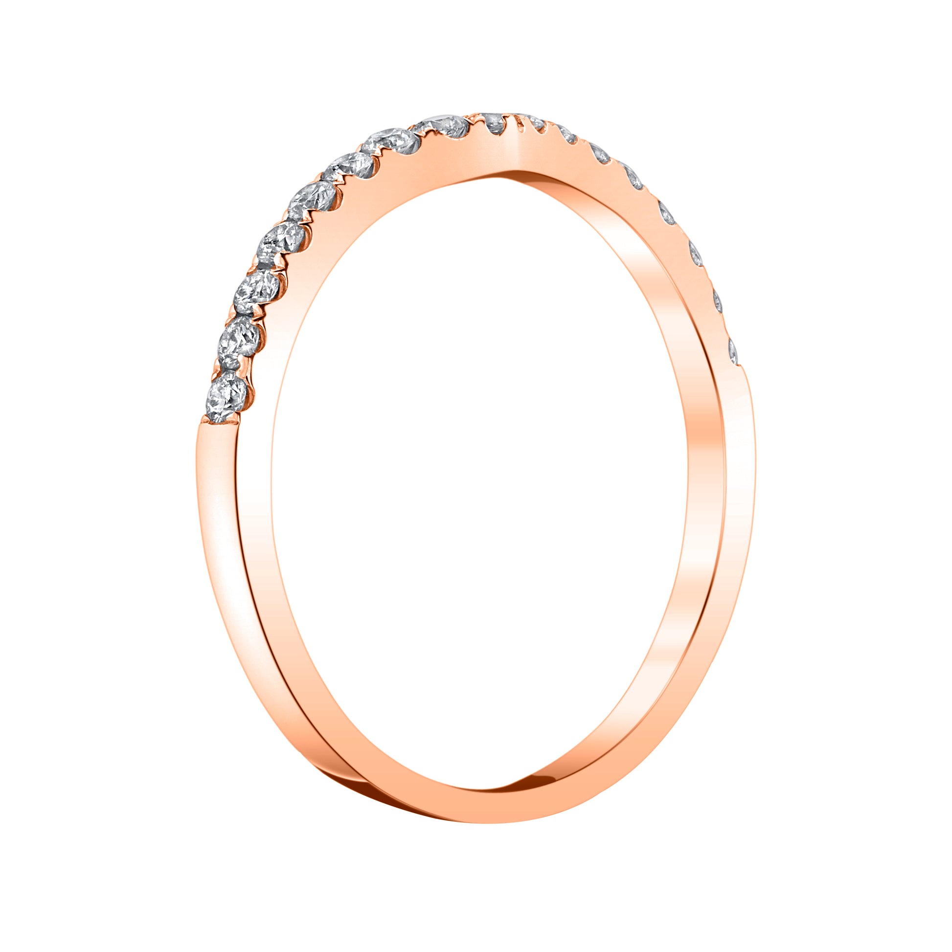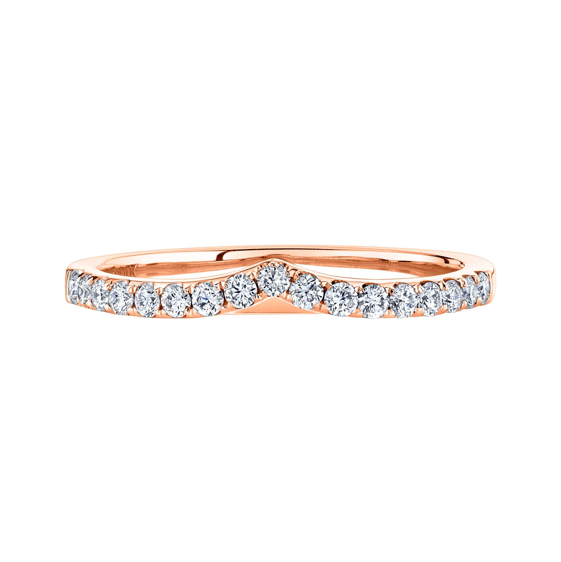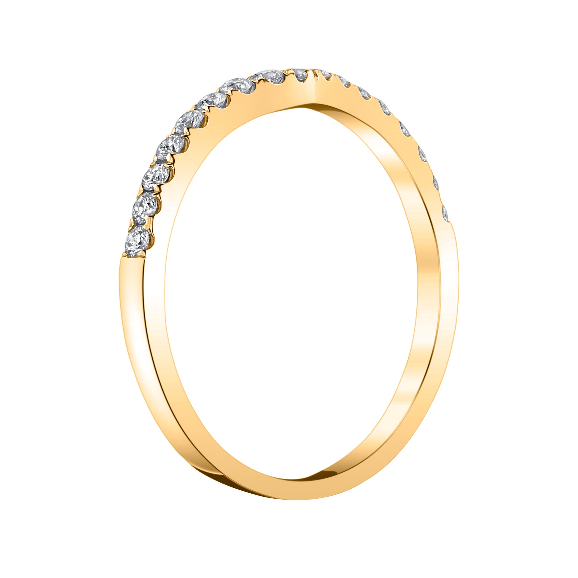 - 0.32 carats of natural round brilliant VS white diamonds set into a solid 14K gold single row chevron band ring