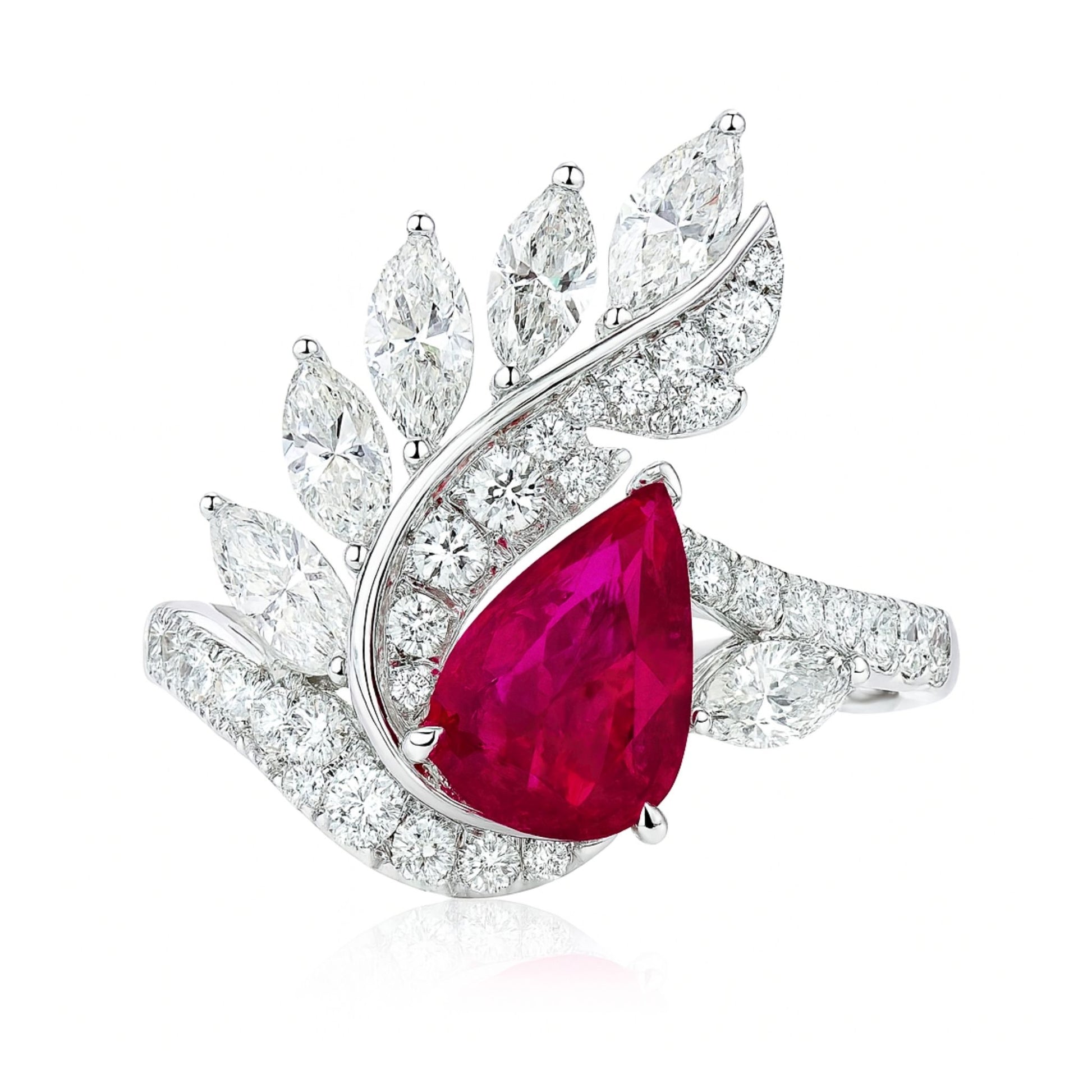 Platinum 1.02ct Pear Shape Mozambique Ruby 1.18cttw White Diamonds Ring