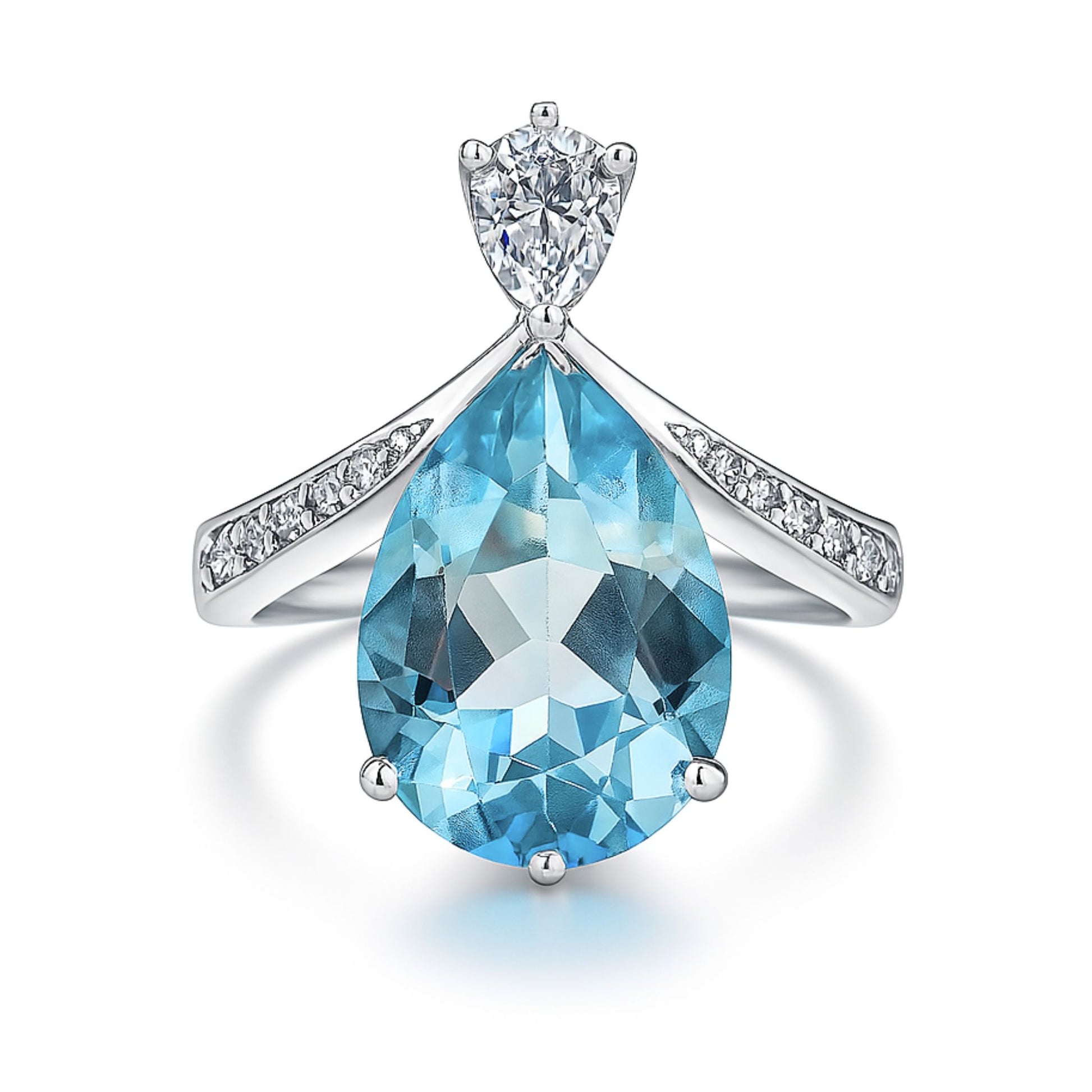 Platinum 2.95ct Pear Shape Santa Maria Aquamarine 0.39cttw White Diamonds Ring