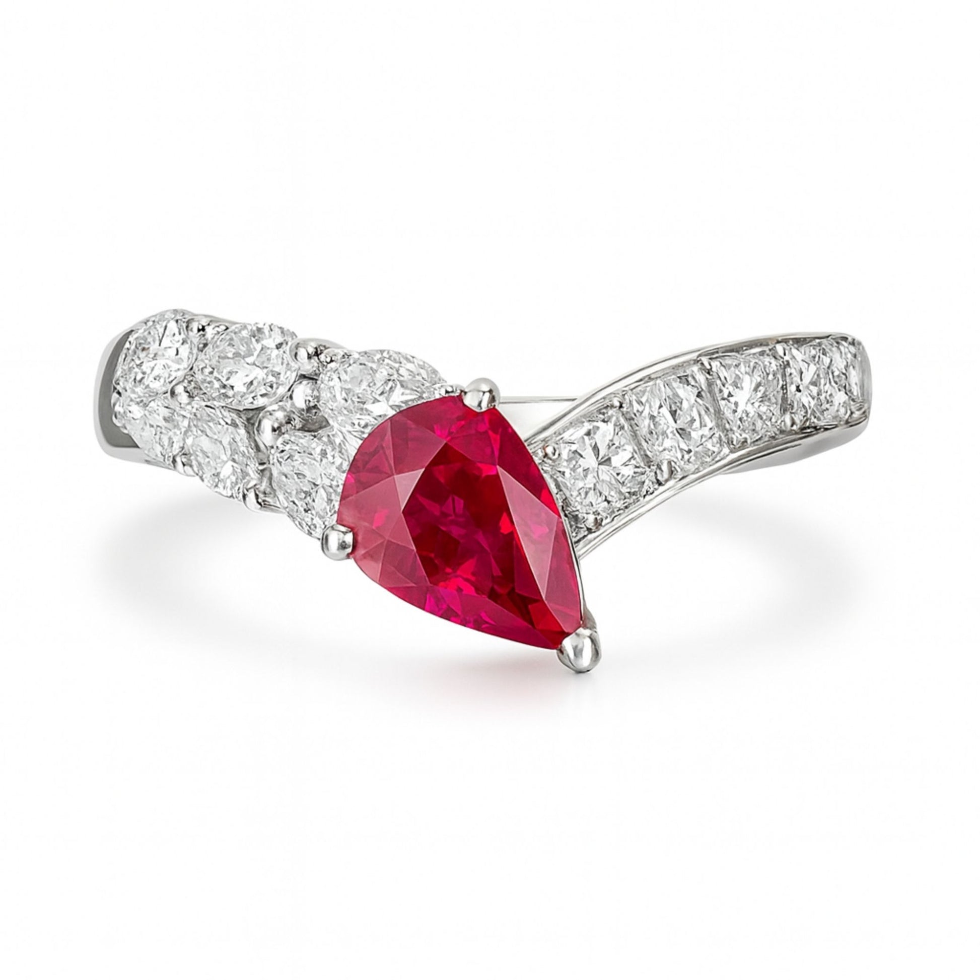 Platinum 1.36ct Pear Shape Ruby 0.71cttw White Diamonds Ring
