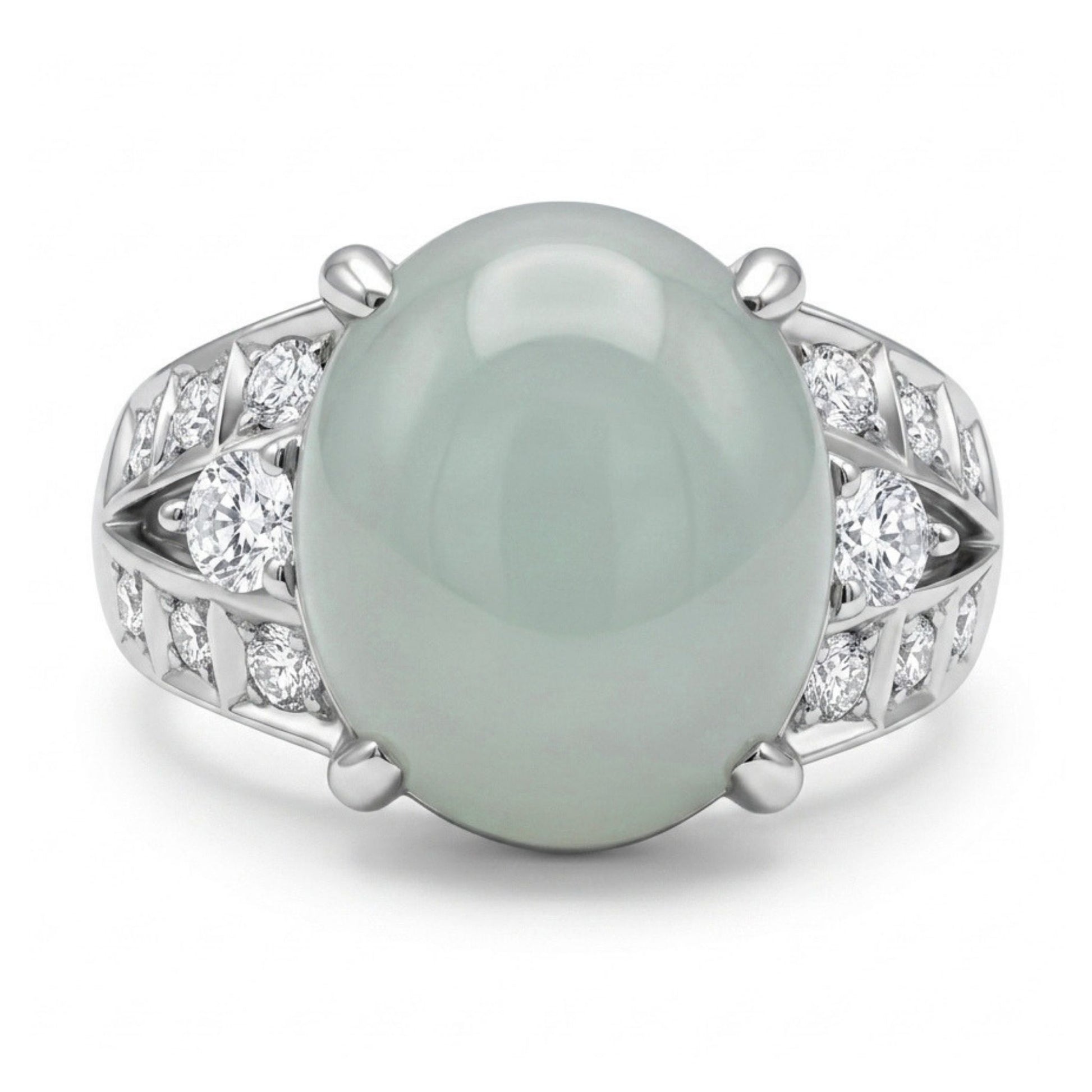 Platinum 9.49ct Oval Cat's Eye Aquamarine 0.50cttw White Diamonds Ring