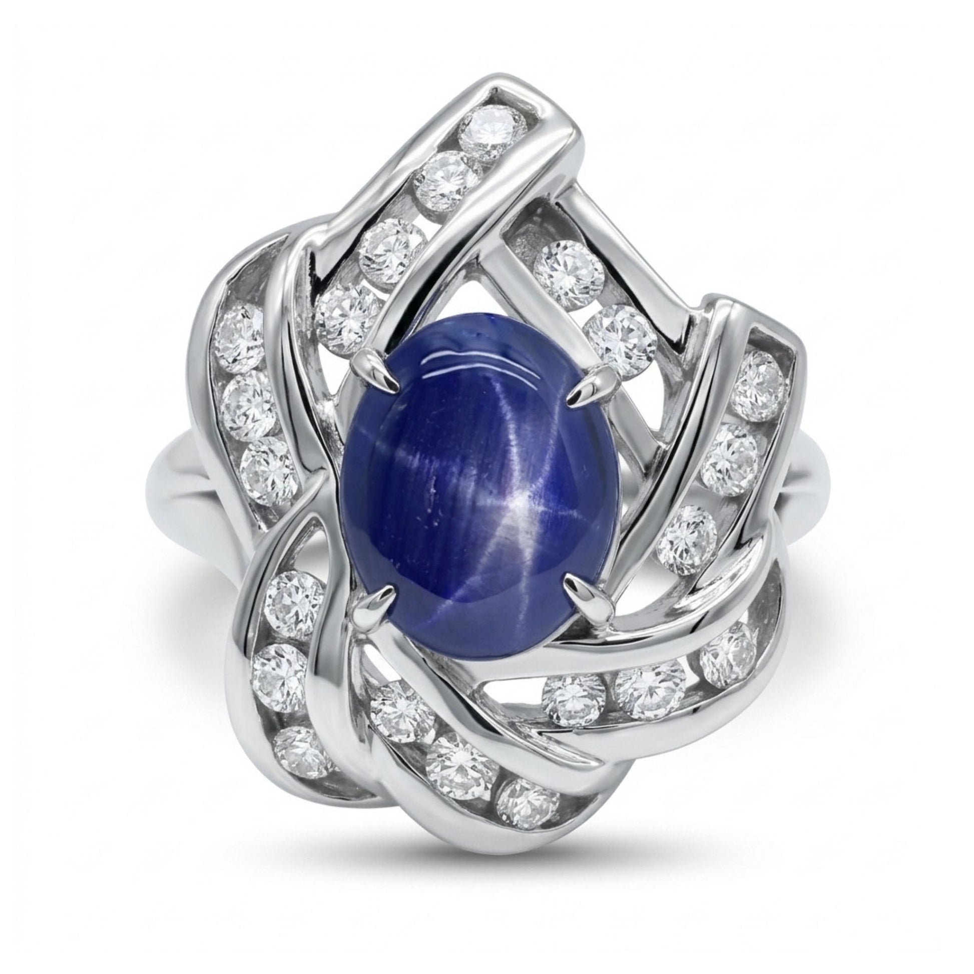 Platinum 2.44ct Oval Star Sapphire 0.43cttw White Diamonds Ring