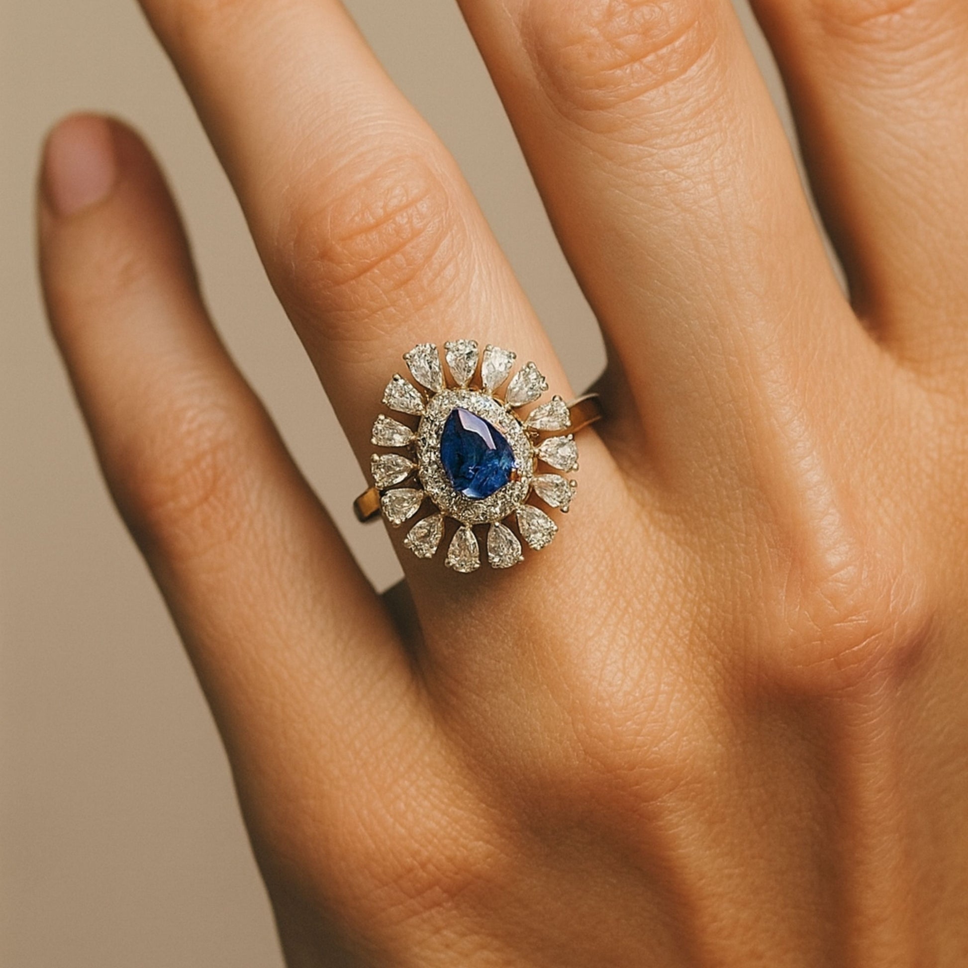 Platinum 0.43ct Pear Shape Hauyne 1.01cttw White Diamonds Ring